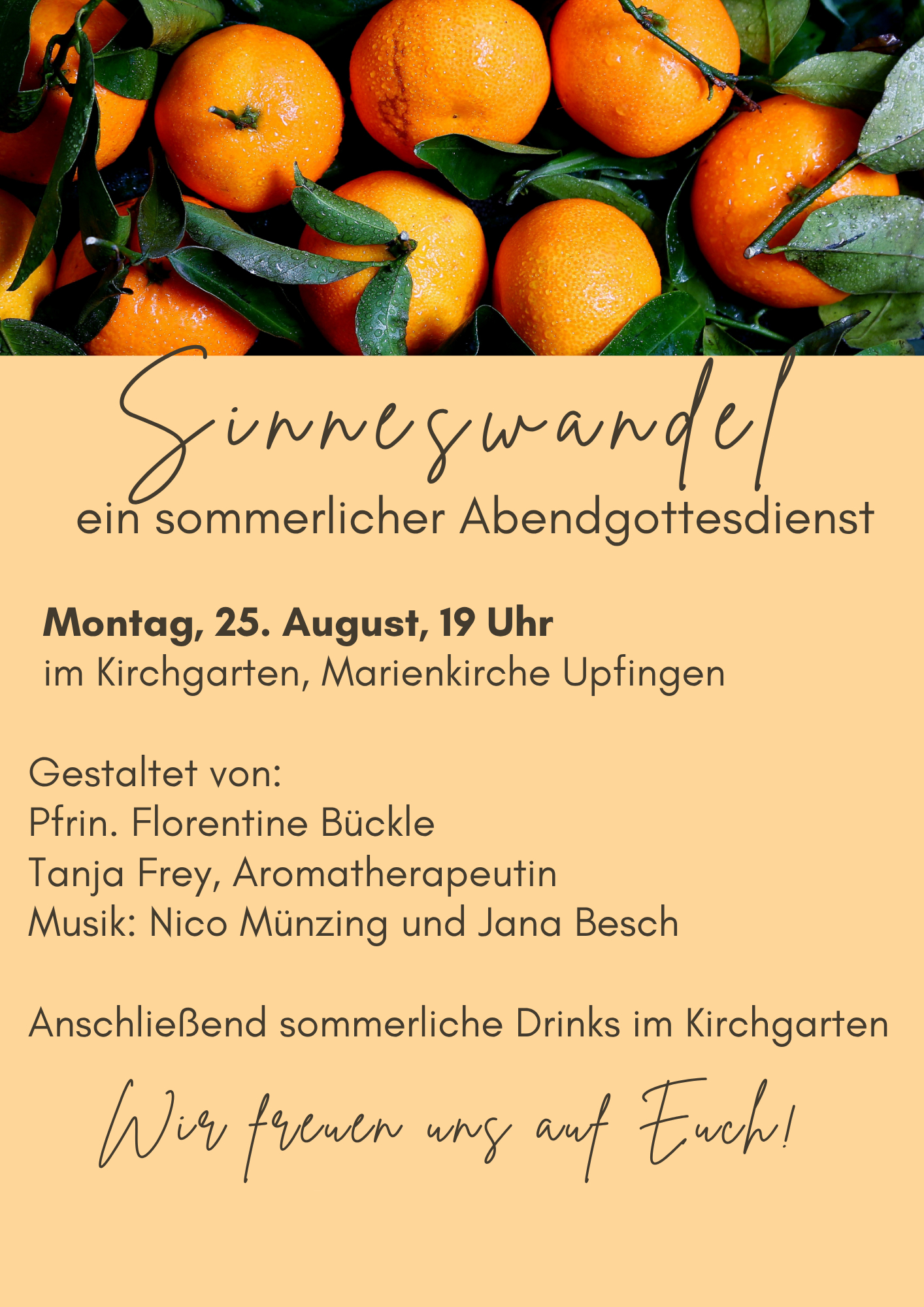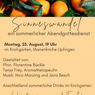 Abendgottesdienst „Sinnenswandel“ am Montag, 25.8.25 im Upfinger Kirchgarten 12. August 2025 Redaktion Vorlage